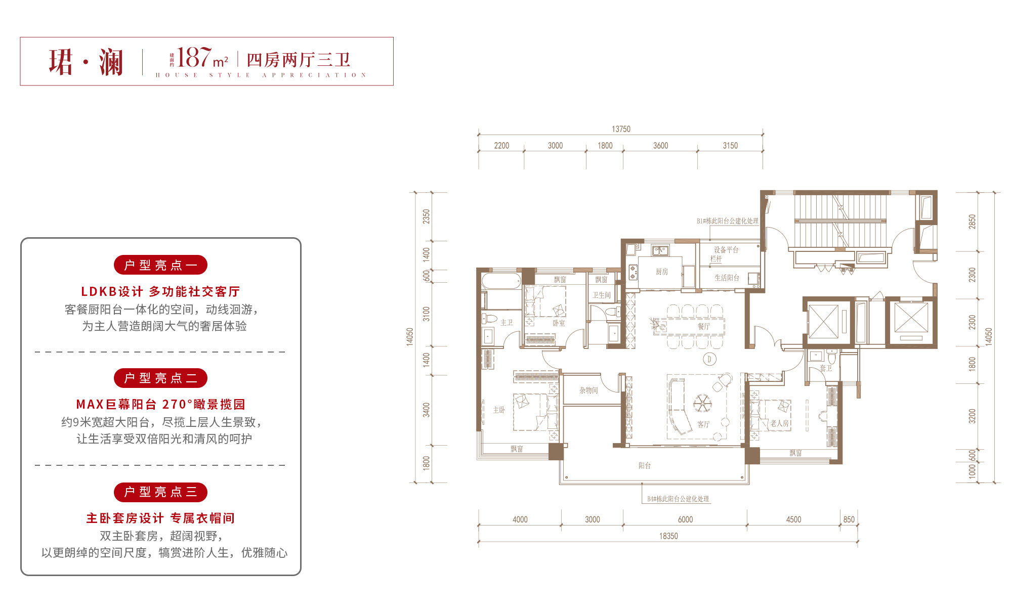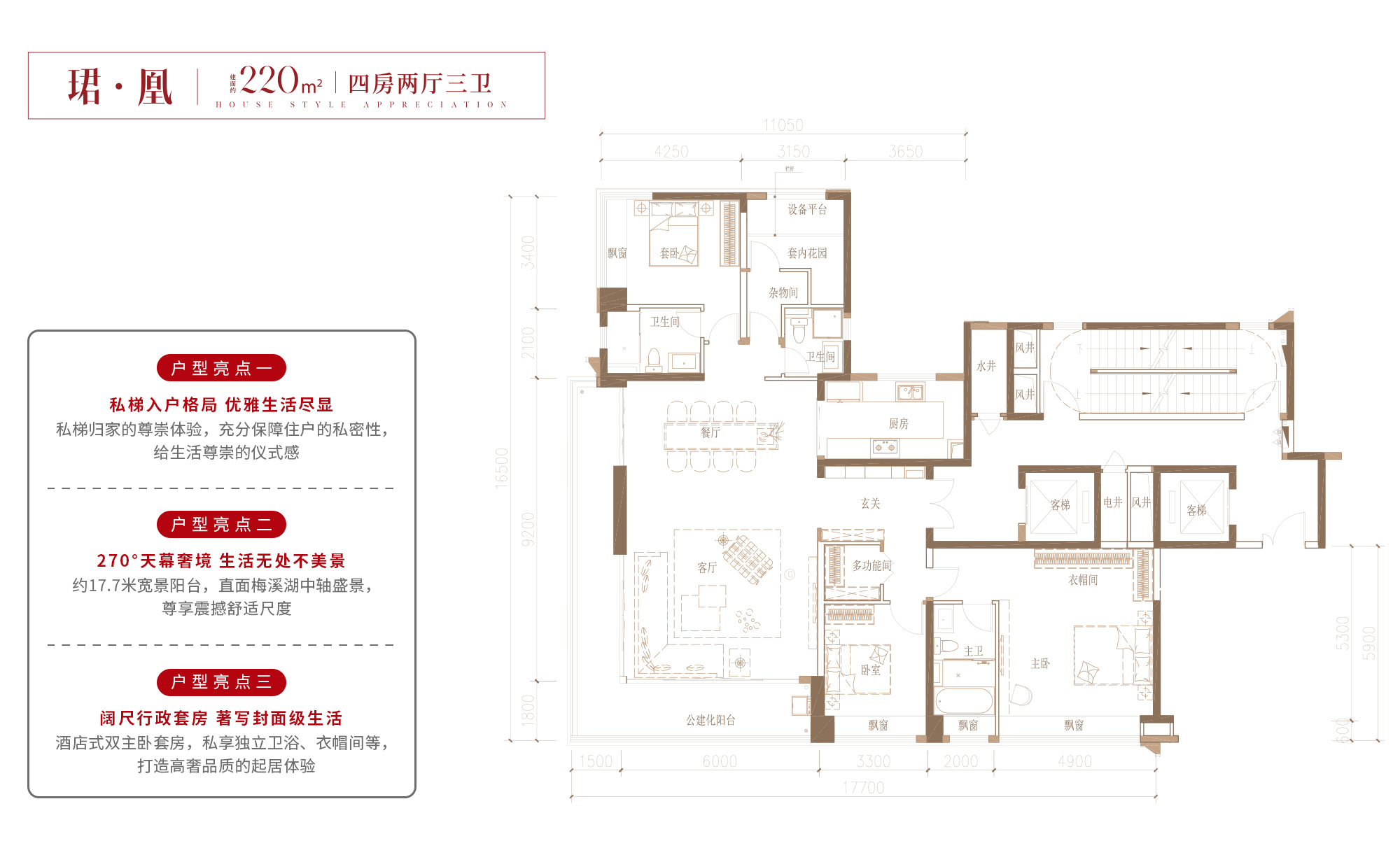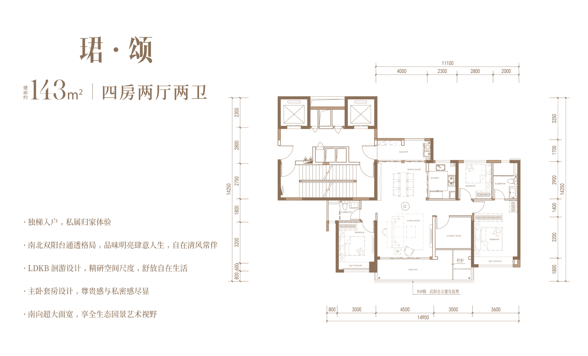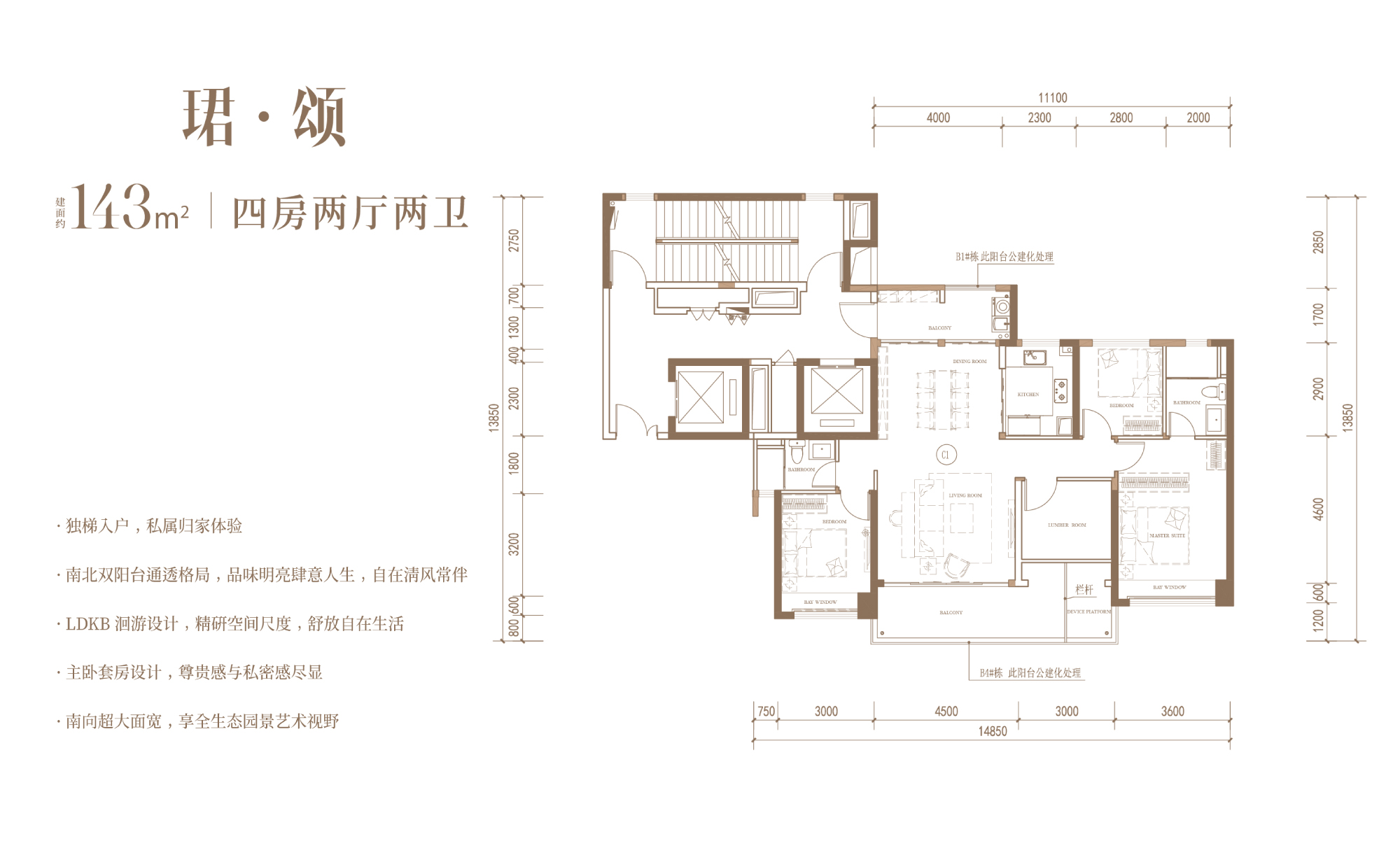 项目为纯住宅用地,所有楼栋都是严格按照天珺产品系“全景规划及全景自然”的理念规划设计,都为南北朝向,日照采光、通风视野俱佳。项目产品主要是两梯两户和两梯三户,每一户都做到了独梯入户。 项目B地块南侧出口对着超级中轴,客户不仅能够享受到小区内的私园,同时也打通了与中轴外部公园的链接。